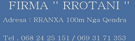 FIRMA '' RROTANI '' ADRESA : RRANXA 100m NGA QENDRA +355 68 24 25 151 /+355 67 28 06 572